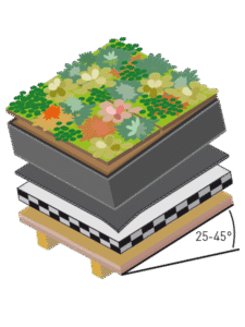 The ideal system for installing a maintenance-friendly extensive green roof with sedum, herbs and grasses. Suitable for flat and (steep) pitched roofs. We supply complete extensive green roof systems, including the vegetation. We grow the vegetation ourselves at our sedum nursery and it is of excellent quality. There is a suitable extensive green roof system for almost every roof.